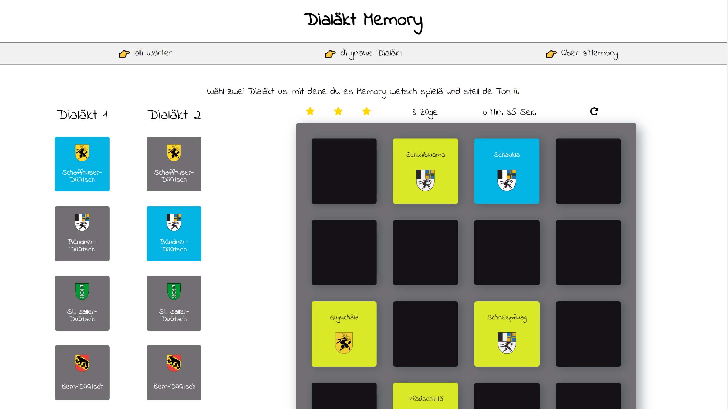 Als Semesterprojekt im Rahmen meines Studiums entstand das Dialäkt Memory.